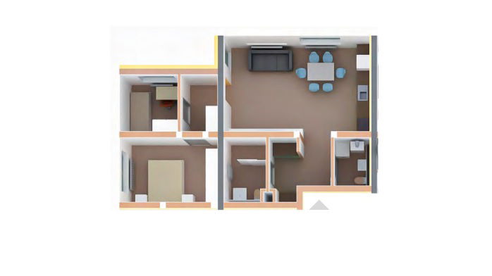 • Renderji so naključni za vsa stanovanja, stanovanje je predstavljeno s tlorisom
